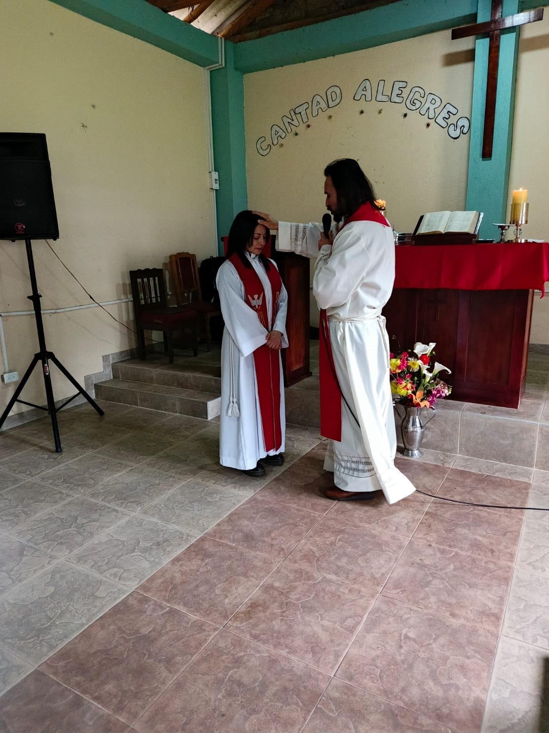 La ceremonia fue presidida por el Obispo de la IELCO, Reverendo John Rojas, quien, en presencia de la comunidad congregacional, realizó el acto litúrgico de instalación, encomendando a la pastora con oración, bendición y palabras de aliento.
